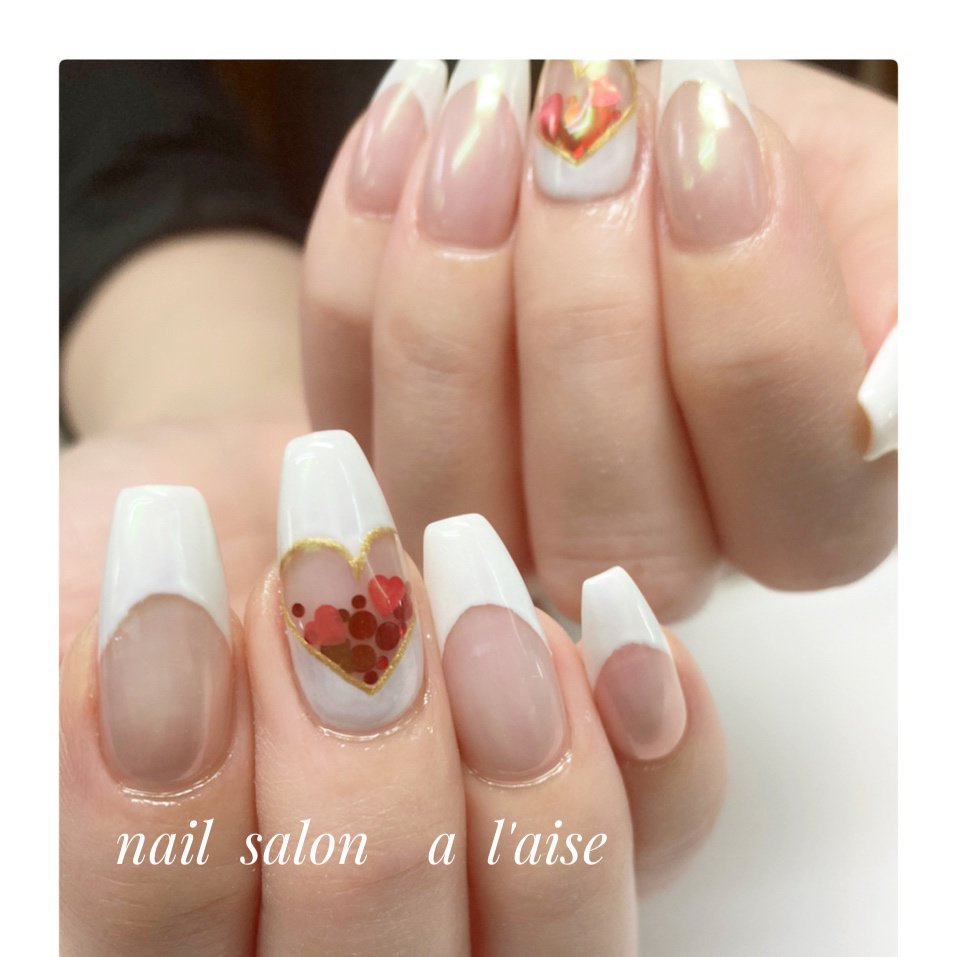 ハートのくり抜き白フレンチネイル 釧路のネイルサロン Ruelle リュ エル のブログ